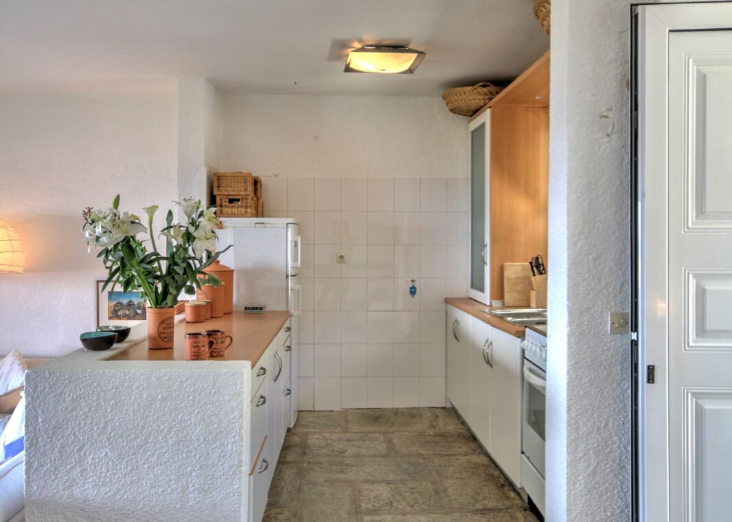 The villa features a well-designed living room, perfect for lounging and unwinding after a day of exploring the beautiful surroundings. The fully equipped kitchen offers a convenient space to prepare and enjoy delicious meals together, providing you with all the necessary amenities and appliances to cater to your culinary needs.