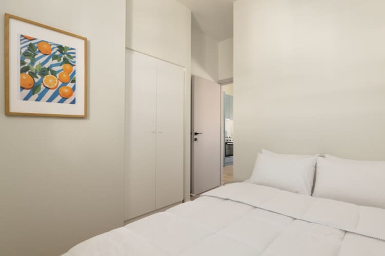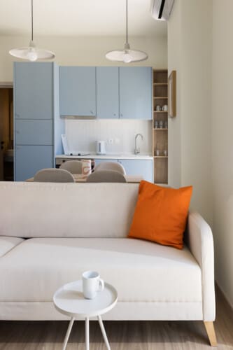 This 40 m² two-bedroom apartment at Celine Volos by halu! is perfect for families, friends, or colleagues who want to share a spacious and comfortable stay while enjoying their own privacy. It features two separate bedrooms with double beds and soft linens, a cozy living area with a couch, and a Smart TV, ideal for unwinding after a day exploring Volos.