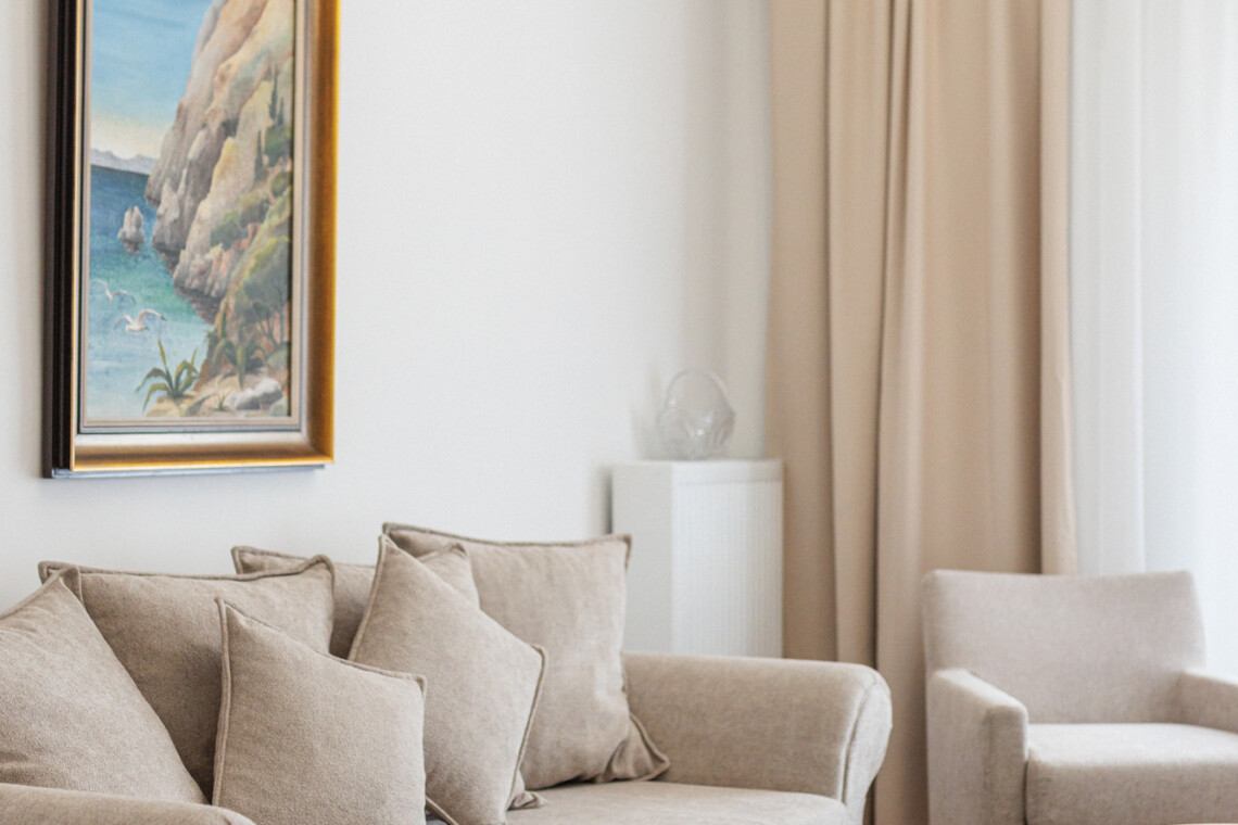 Erato by halu! is a sophisticated two-bedroom penthouse located on the 6th floor, right in the beating heart of Thessaloniki. Blending classical charm with modern comfort, the apartment is designed to make every guest feel at home.
