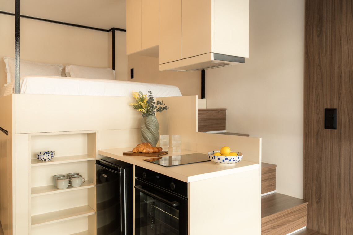 With high-speed Wi-Fi, air conditioning and a smart interior layout, the Studio Apartment at FOS is a perfect base for both short city breaks and longer visits. It offers the privacy of a personal space with all the comfort and thoughtful design that define halu’s philosophy of urban hospitality.