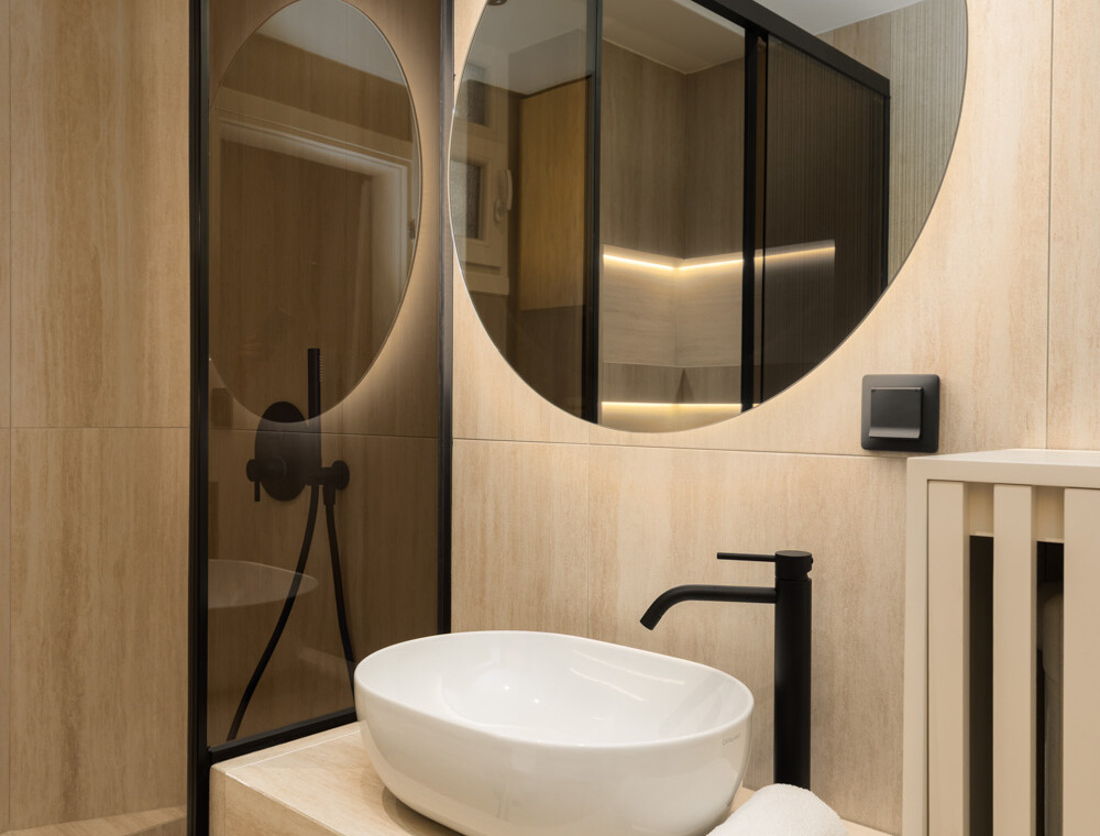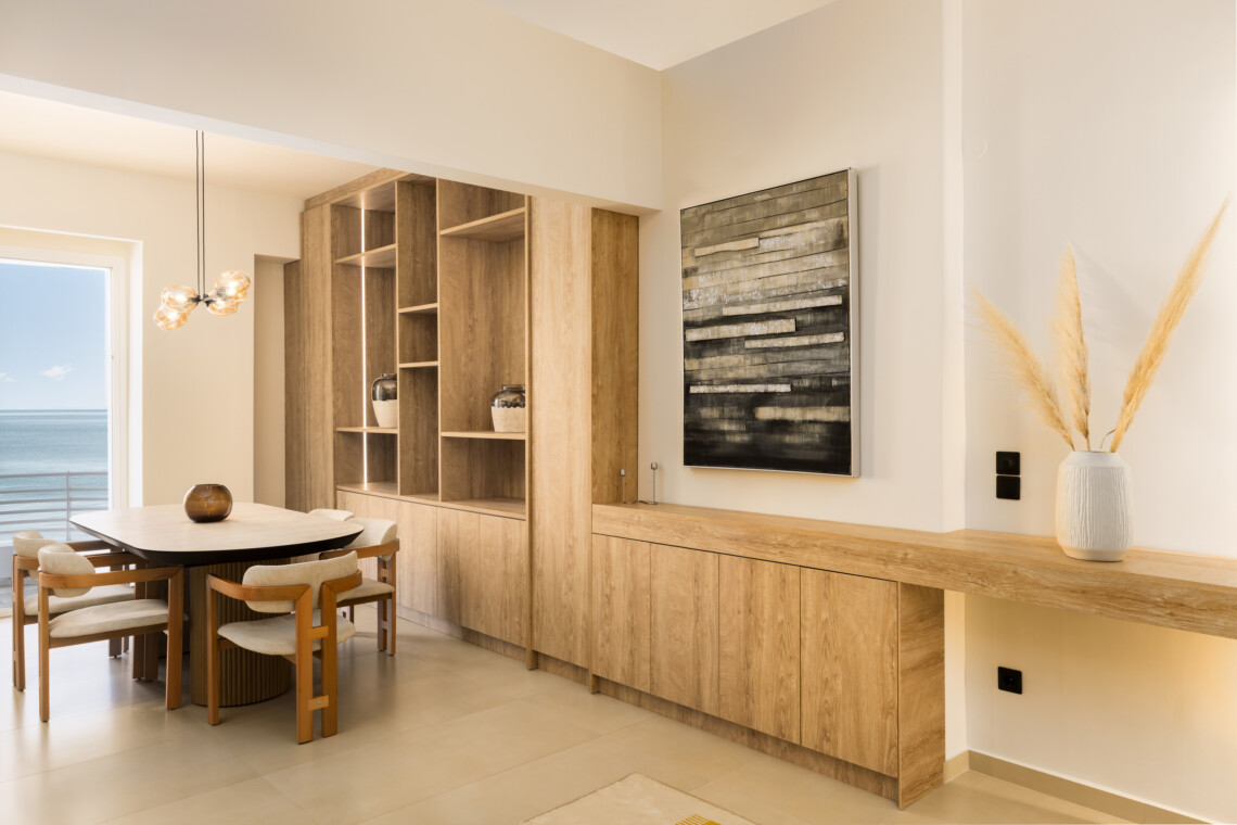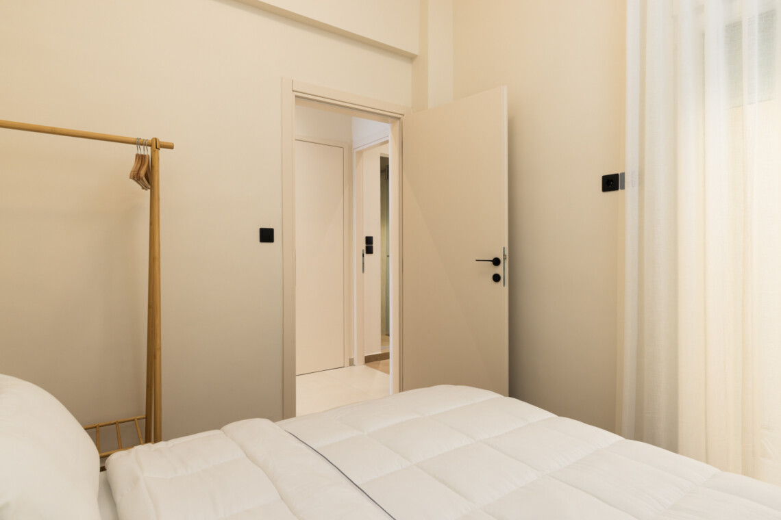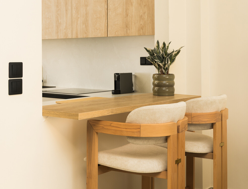 Ivory features two beautifully styled bedrooms and two bathrooms, making it ideal for couples, families or business travelers. The open-plan layout combines Scandinavian minimalism with Mediterranean warmth. Natural wood accents, soft lighting and clean lines create a serene and welcoming atmosphere.