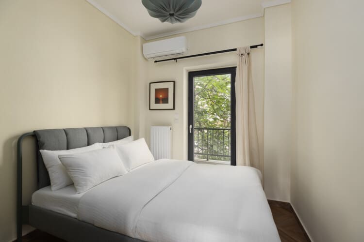 Every detail in Oak Tree has been curated with modern urban living in mind, from the chic lighting fixtures to the comfortable lounge and premium amenities. Two stylish bathrooms with walk-in showers provide convenience and privacy for all guests, while the layout ensures a peaceful and balanced stay whether you are in Thessaloniki for work or leisure.